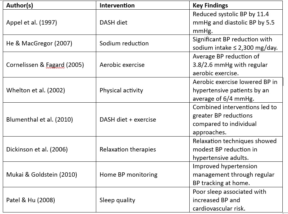 6. Whelton, S. P., et al. (2002). "Effect of aerobic exercise on blood pressure: a meta-analysis of randomized, controlled trials."Annals of Internal Medicine, 136(7), 493-503.