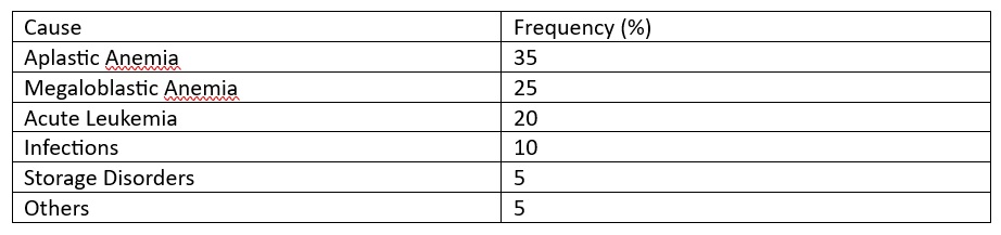 The findings underscore the importance of bone marrow evaluation in diagnosing pancytopenia. Early recognition of treatable causes like megaloblastic anemia can prevent complications, while timely diagnosis of serious conditions like leukemia is critical for survival.